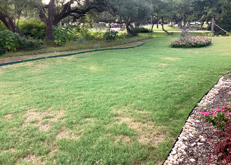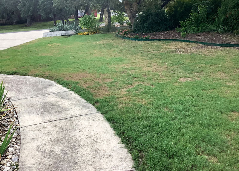 The image that shows the browned areas in the foreground gave me the best clues. I do understand the stages of drought that the San Antonio area has encountered, but this still does look like Pythium root rot.