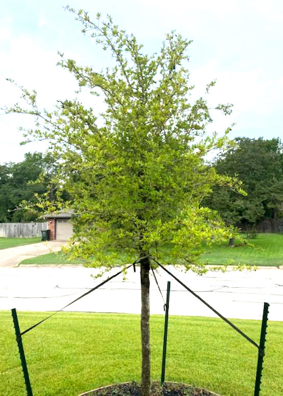 Two other quick checks you might make of this tree and its trunk. Look closely at the south and southwest sides to see if there is any cracking or splitting that might indicate sun damage. I can’t tell if you have it wrapped to protect against that. Also, look at the base where it enters the ground. Make sure it’s not planted too deeply. The root flare should be at or very near the soil surface. Again, I can’t tell from the photo. If it’s not, you may have to remove some of the soil to expose the top roots just a bit.