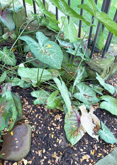 Answer: My good friend Bob Brackman did research on many different varieties of caladiums while he was at the Dallas Arboretum many years ago. He was comparing planting dates and numbers of weeks that the plants looked good before they started to go dormant – what yours are doing now. Bob found that there was no reason to hurry the plantings in the spring, because each variety had roughly the same number of weeks of peak performance before it would start to go downhill for fall. Most varieties begin to decline by September, especially if they have been planted early (late April or early May in your area). If you let them get dry in late summer or if you let the plants produce flowers you can expect them to decline more rapidly. What you’re seeing is normal behavior.