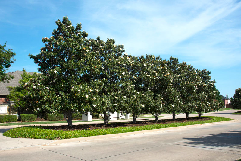 • Little Gem southern magnolia is tops of this list. They grow to 25 or 30 ft. tall and 20 to 25 ft. wide. In all respects, including leaf and flower size, they’re about half the size of standard southern magnolias. If you have the ground space to accommodate them, these make a stunning tall screen. They’re favorites with professional landscape designers.