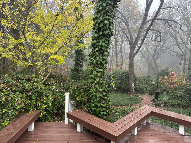 Their roots remain active. Many types of plants continue to grow in cooler weather. Unless we are under active water restrictions, it’s important that we water when the soil begins to dry. It’s critical to our foundations, drives, walks, and patios as well.