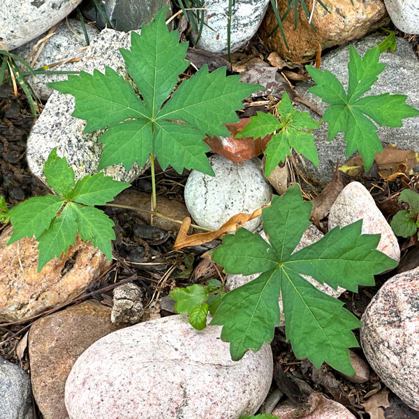 Great-granddaughter Jackie (6) is afraid that all plants in Grandpa Neil’s woods are poison ivy. We were out on the driveway with her last week, and I saw the ideal teaching opportunity. There, growing side by side were the two classic plants that even adults get confused. Each had recently germinated and was proudly growing in a spot where neither is welcomed. It made for a great pop-up classroom for Jackie.