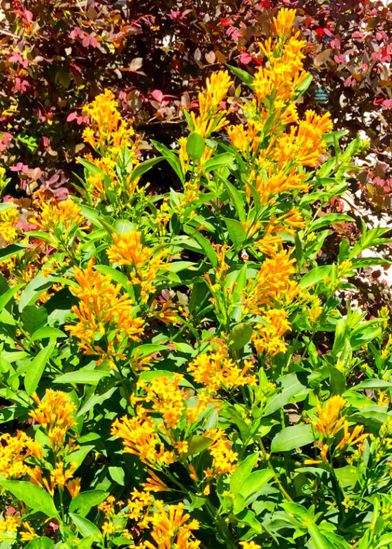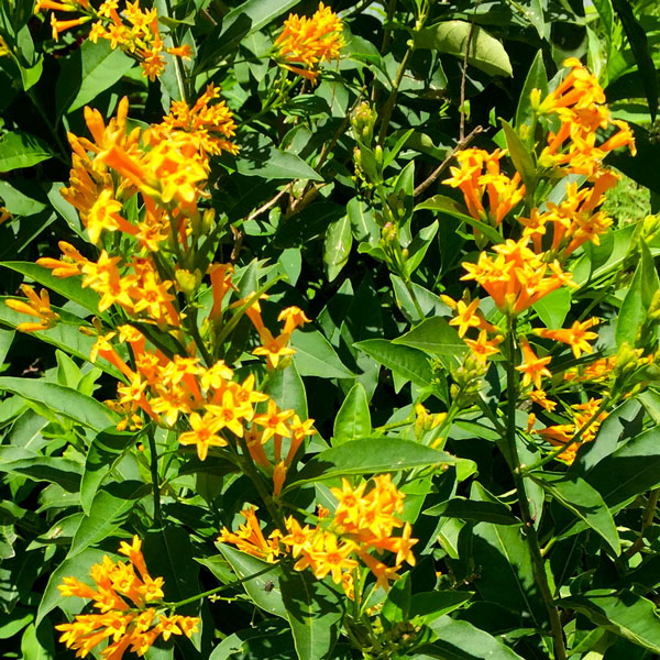 Cestrum ‘Orange Zest’ is a somewhat sprawling shrub best known for its bright yellow-orange terminal floral sprays. When grown and featured correctly it’s a landscaping showstopper.