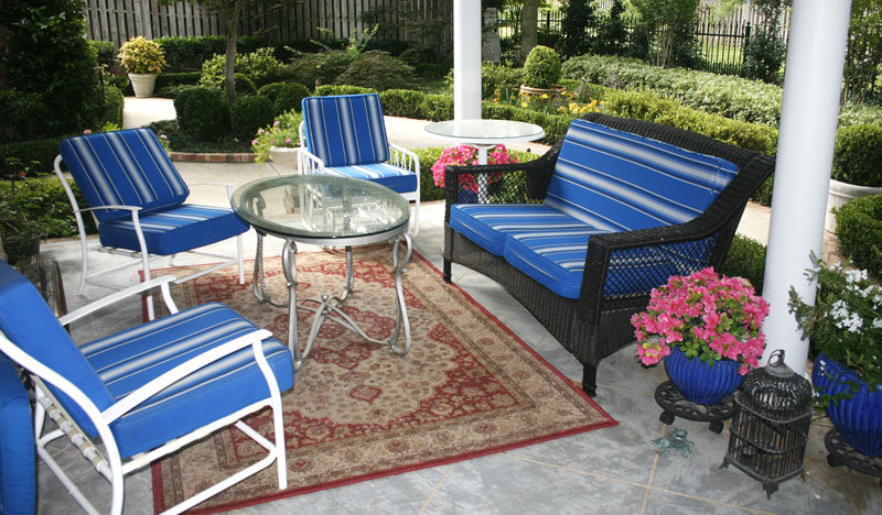 If you want to start small, add a blue ceramic pot or a blue gazing ball. If you like what you see, paint an arbor, add a blue garden umbrella, or design a blue mosaic table top to create a stronger focal point. Outdoor furniture readily welcomes blue upholstery and pillows. And when day gives way to night, blue string lights enliven decks, patios, and courtyards.