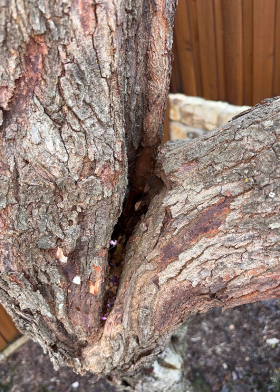 Question: My Forest Pansy redbud is 17 years old. It has developed a 10-in. gap in its main branches of the trunk. Should I cable the branches or bite the bullet and replace the tree? It’s 5 ft. from the 8-ft. fence. Any species recommendations? David S., Allen.