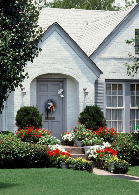 • Iron deficiency: Look for yellowed leaves with dark green veins, most prominently displayed on the newest growth (ends of stems) first. Apply an iron product with sulfur soil acidifier. Keep iron products off masonry surfaces that could be stained. Iron products can also be sprayed directly onto foliage, but again, be careful that spray does not drift onto stone or brick on side walls of your house. Try a small area first to be sure you get the results that you’re seeking.