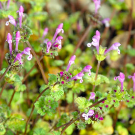 Scalping is good lawn practiceYou can make a case for scalping your lawn, and if you're in South Texas, it's just about time. (2-3 weeks in North Texas.) Let's list the benefits and how best to do it. I'll give pointers and precautions. Photo: Henbit is an early spring weed you'll eliminate by scalping. |